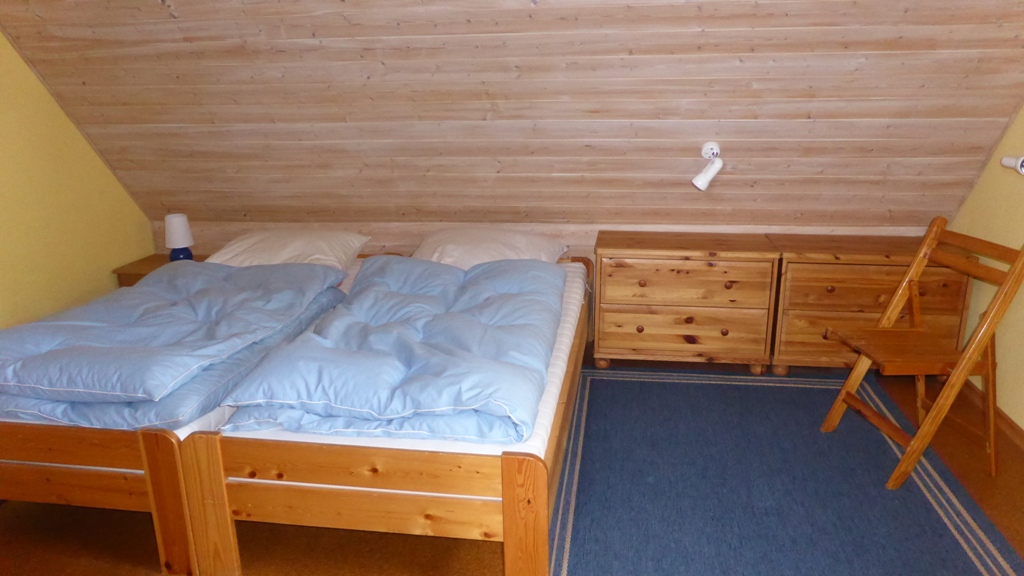 Schlafzimmer mit Doppelbett und Schlafsessel